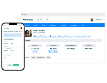 managing leave requests, performance objectives, training records and much more.